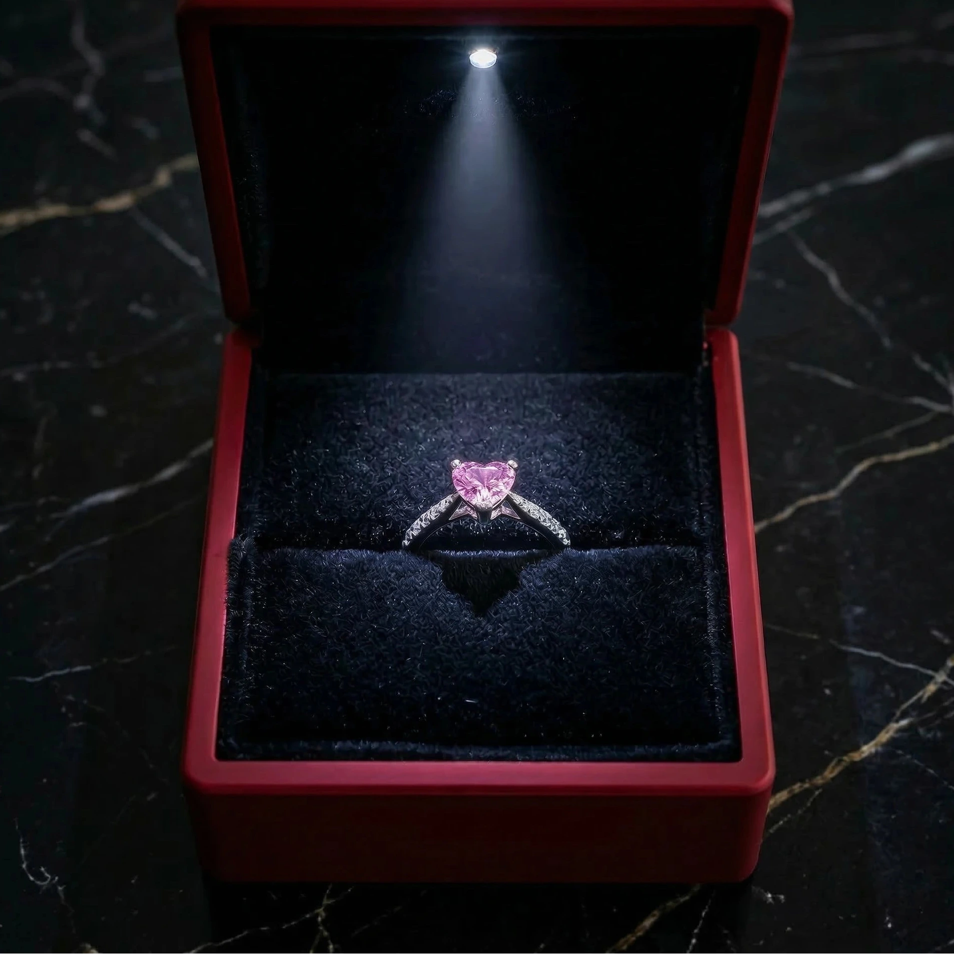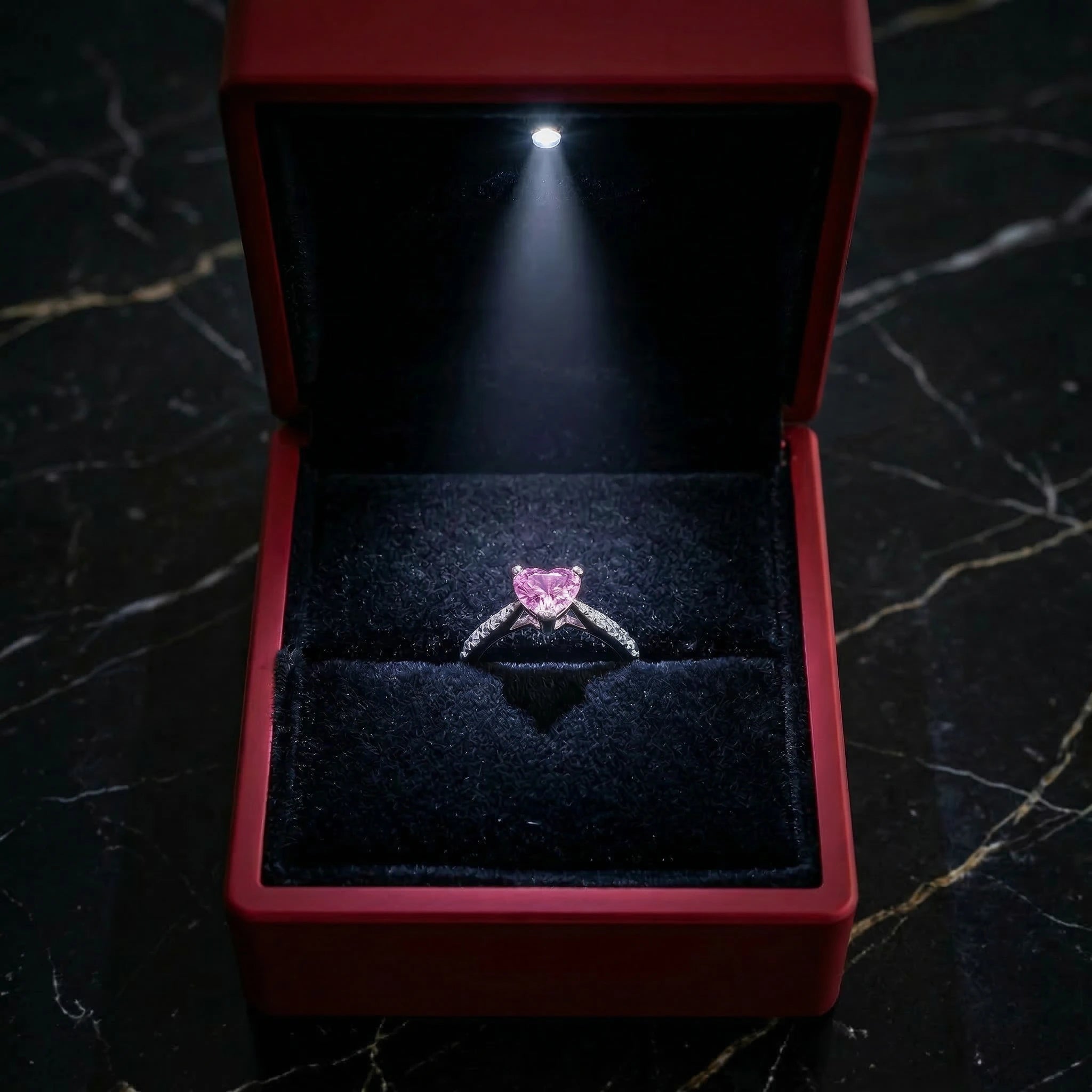 Das pinke Herz ist super elegant und nicht kitschig. Durch die verstellbare Größe passt er perfekt, obwohl ich meine Ringgröße nicht kannte. Trage ihn jeden Tag und nehme ihn beim Duschen ab.