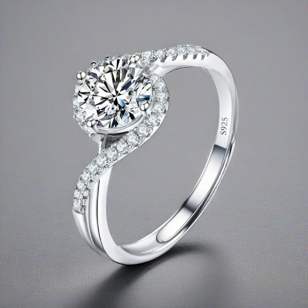 Eleganter Promise Ring mit strahlendem Diamanten und funkelnden Akzenten – ein Symbol ewiger Liebe und zeitloser Schönheit.